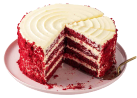 Each forkful reveals a wonderfully moist and tender crumb, subtly infused with cocoa that leaves a pleasant, lingering taste. The striking red color is captivating, promising a luxurious experience even before the first bite. What truly sets our Red Velvet Cake apart is the generous swirl of our classic tangy cream cheese frosting – smooth, rich, and perfectly balanced to complement the cake’s unique character.